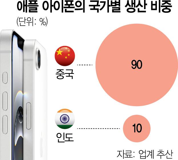 애플은 미중 무역전쟁 이전부터 인도에서 생산·수출을 빠르게 늘려왔다. 업계는 애플이 최종 생산되는 아이폰의 90%를 중국에서 조립하고 나머지 10%는 인도에서 조립하는 것으로 추산하고 있다. 시장조사 업체 카운터포인트리서치는 지난해 인도산 아이폰 비중이 18%까지 늘어났을 것으로 내다봤으며 올해는 이 비중이 32%까지 확대될 수 있다고 추산하고 있다. 애플은 내년 말까지 미국 내 판매되는 아이폰 6000만 대 전량을 인도산으로 조달하는 방안도 검토 중인 것으로 전해졌다.