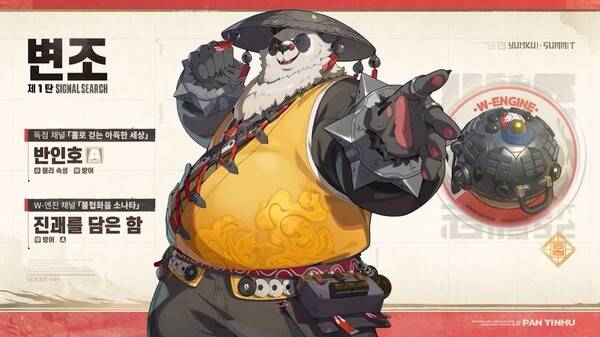 운규산 진영 반인호는 A급 물리 속성 방어 에이전트다. 파티에 명파 혹은 같은 진영 캐릭터가 존재하고 단맥파혈수가 적에게 명중할 시, 일정 시간 모든 유닛이 해당 적에게 주는 피해가 증가한다. 궁극기를 사용하면 HP 회복 및 짧은 시간의 지속 회복 효과를 부여한다.