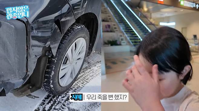 이지혜 가족은 일본 오키나와로 여행을 떠났다. 현지 도착 후 이지혜는 "지금 렌트카를 픽업하러 간다. 지난번 삿포로 (여행) 때 사고가 났지 않나"라고 말했다. 이어 영상에는 삿포로 여행 당시 교통사고 현장 사진이 공개됐다. 빙판길 교통사고로 차가 파손된 것. 이지혜가 딸에게 "기억나냐 태리야"라고 묻자 태리는 "심장 떨어질 줄 알았다"고 답했다. 이지혜는 "우리 죽을 뻔했다"고 했다. 그러면서 "엄마가 다른 건 못하고 보험을 센 걸로 (들었다)"고 전했다. 태리는 "아빠 조심해야지"며 걱정과 잔소리를 담아 말했다.