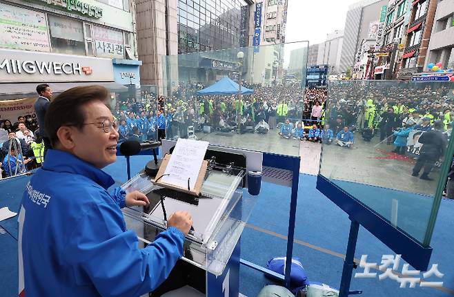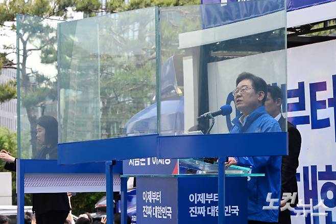 대선 후보 최초로 '방탄 유리' 연단 선 이재명