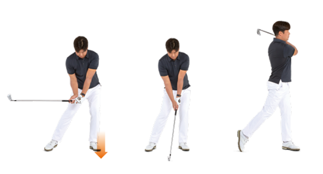 백스윙 때 왼발 뒤꿈치 드는 힐업으로 체중이동