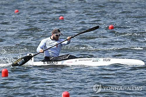 epa12128400 Balazs Birkas of Hungary competes in the final of the Men's K1 200 meters race at the ICF Kayak and Canoe World Cup event in Poznan, Poland, 23 May 2025. EPA/Jakub Kaczmarczyk POLAND OUT
