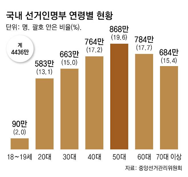 이번 대선 유권자 4439만명… 50대 19.6%-수도권 50.9% ‘최다’