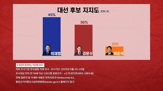 ◆ 이기인> '많이 언론에서 지분을 가져가니까 자연스럽게 상승했다'는 평가가 있을 수 있는데 요즘 미디어가 발달했기 때문에 이준석 후보가 백브리핑이든 언론 인터뷰든 어떤 이야기를 했는지 국민들이 세세하게 다 찾아보실 거라고 생각을 해요. 완주 의지를 분명히 봤을 것이다. 국민의힘이 아무리 저렇게 단일화 장사하고 김용태 비대위원장을 허수아비 삼아 가지고 앞으로 내세웠지만 그럼에도 불구하고 지금까지 3년 동안 당을 창당하면서 개혁신당이 하고자 했었던 정치의 뜻을 알고 있을 거기 때문에 그리고 계엄에 대해서 반대를 하고 탄핵에 대해서 아주 세게 찬성했었던 세력이 개혁신당이라고 자부하거든요. 그런 이력과 역사들을 알고 있기 때문에 '아 이 사람들은 완주 의지 내지는 단일화를 안 하겠다'라는 그 진정성을 알고 있을 거라고 생각합니다. 그런 것들이 조금 조금씩 인정을 받아서 이 10%의 두 자릿수의 지지율이 나타나는 것은 아니냐라는 생각을 해 봐요.