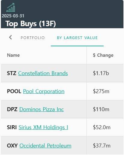 최근 버크셔 해서웨이가 공개한 13F 보고서에 따르면 지난 1분기 금액 기준으로 가장 많이 사들인 종목은 콘스텔레이션 브랜드와 풀 코퍼레이션으로 집계됐다.
