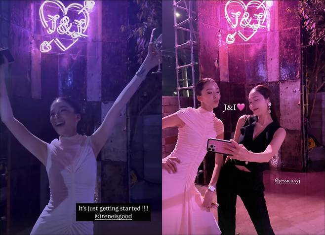 타이트한 분홍색 원피스를 입은 아이린은 하객으로 참석한 전세계 패션계 셀럽들과 샴페인을 마시고 사진을 찍으며 화려한 웨딩 전야제를 보냈다. 소녀시대 출신 제시카도 함께 해 눈길을 모은다.