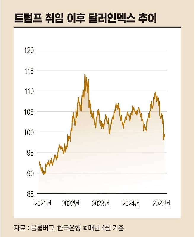 상호관세 유예 협상이 시작된 지 두 달이다. 도널드 트럼프 집권 2기 관세정책의 근간인 미란 보고서의 시나리오대로 관세에서 환율 문제로 넘어가는 분위기가 뚜렷하다. 빠르면 5월 안에 발표할 미국 재무부의 2025 상반기 환율 보고서 결과를 보면 이 움직임이 보다 명확해질 것으로 예상된다.