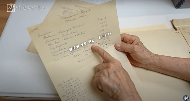 "이건 ‘코리언 프리즈너 오브 워’ 155불 45전. 헌금을 받은거야. (한인) 사회 전체적으로 청년들이 돈을 모아 가지고 선물도 보내고 또 그전에는 우리 국민보 신문도 보내주고 또 영어 책자도 보내주고 이런 식으로 많이 도움을 줬고..."