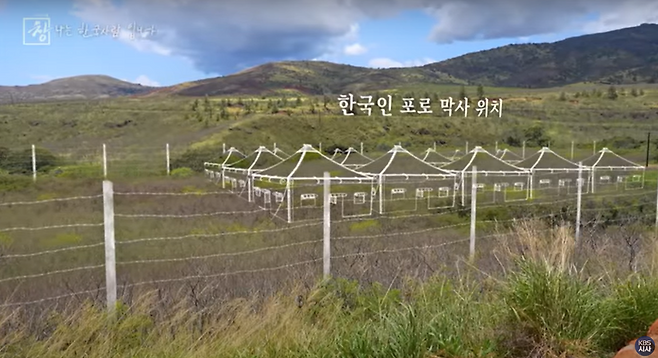 멀리 바다가 보이는, 지금은 수풀이 무성한 자리가 2,700여 명의 한국인 포로들이 지내던 곳입니다.