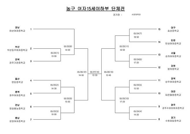 여자 15세이하부에선 부산 동주여중, 울산 연암중, 충남 온양여중이 승리를 맛보며 8강에 안착했다.