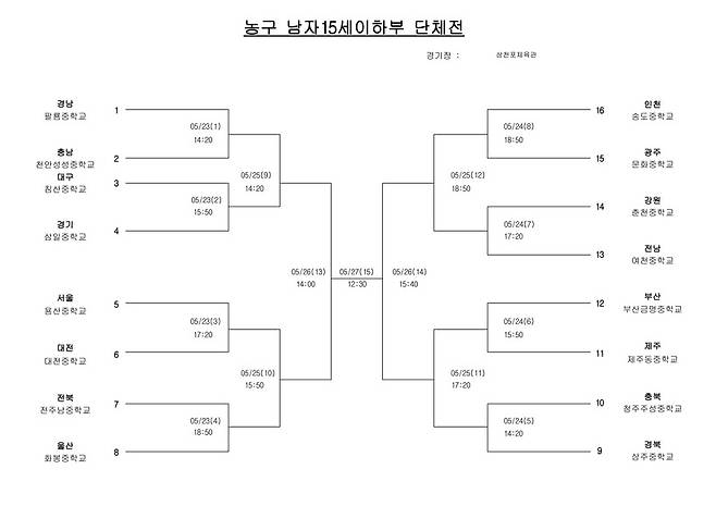 남자 15세이하부에선 큰 이변없이 올라갈 팀들이 올라갔다. 경남 팔룡중, 경기 삼일중, 서울 용산중, 울산 화봉중이 각각 충남 천안성성중, 대구 침산중, 대전 대전중, 전북 전주남중을 물리치며 8강에 진출했다.