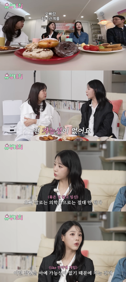 그러면서 “하려면 이제 풀어야하는데, 이것도 시한이라는 게 있어서. 오빠말로는 요즘 세상에서는 절대 안된다더라. 그래서 오빠한테 ‘우리가 낳으면 어떻게 생겼을까? 궁금해’ 이런 장난을 치는 게 아예 가능성이 없어서 그런건데, 방송에 나갔을 땐 그건 모르시니까. 낳아라, 낳지 말라로 파가 갈리더라”고 말했다.