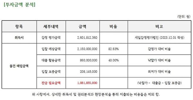 • 감정가 26.01억원 → 최저입찰가 20.81억원 (80%)