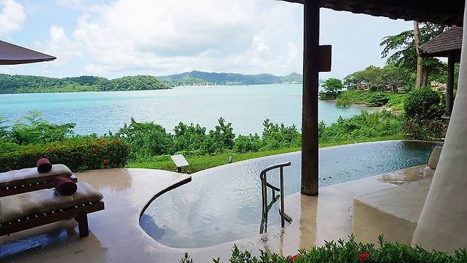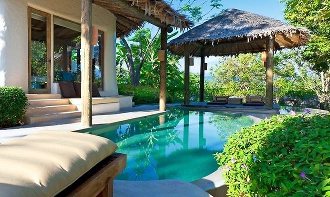 메리어트 계열 브랜드 초호화 럭셔리 프라이빗 단독 풀빌라로 전형적인 휴양형 리조트 표방