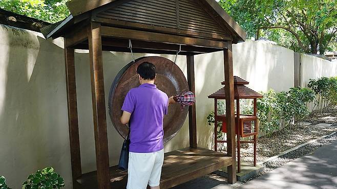 푸껫 더 나카 아일랜드 리조트의 경우 선착장입구에서부터 직원이 손님을 기다리고 있어서 간략하게 섬에 대한 소개를 해주고 또 리조트 초입에는 북을 두번치는데 한번은 용을 깨우고 또 한번은 소원을 빈다고 한다.