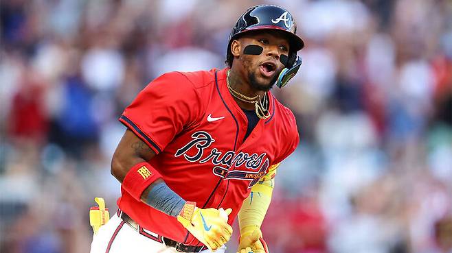 ▲ 복귀 첫 타석에서 초구 홈런을 친 애틀랜타 아쿠냐 주니어