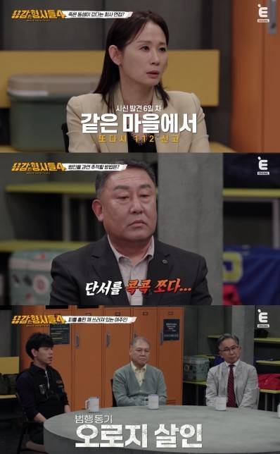 지난 23일 방송된 티캐스트 E채널 '용감한 형사들4'(연출 이지선) 35회에는 대전유성경찰서 강력2팀장 장현수 경감과 과학수사대(KCSI) 윤외출 전 경무관, 김진수 경감이 출연해 직접 해결한 수사 일지를 펼쳤다.
