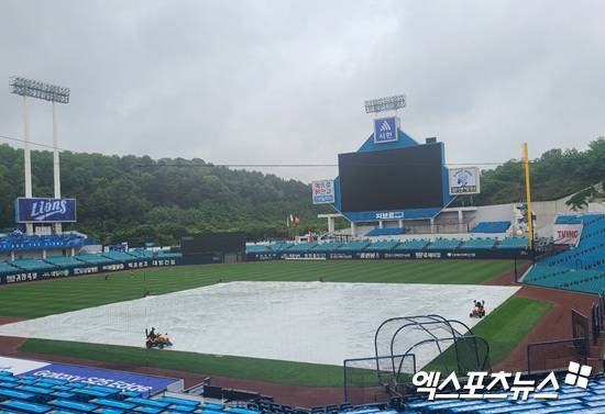 (엑스포츠뉴스 대구, 김근한 기자) 24일 오전부터 대구 지역에 부슬비가 꾸준히 내리고 있다. 대구 삼성라이온즈파크에서 대형 방수포가 깔렸다. KIA 타이거즈와 삼성 라이온즈 간의 맞대결이 정상 개최될지 주목되는 분위기다.
