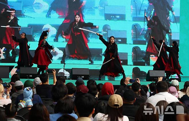[서울=뉴시스] 박주성 기자 = 24일 서울 동대문디자인플라자(DDP) 어울림 광장에서 열린 2025 서울세계도시문화축제에서 한국 공연단이 공연을 하고 있다. 2025.05.24. park7691@newsis.com