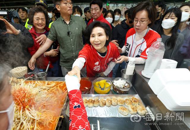 서문시장 온 설난영 "심장 팔짝팔짝 뛰는 대구 되려면 김문수"