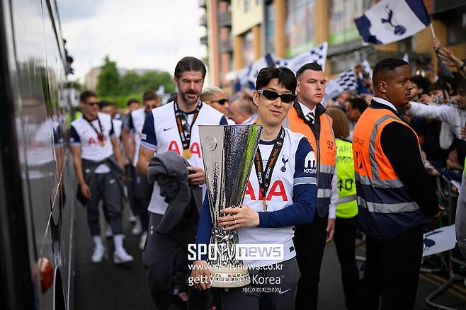 손흥민을 필두로 토트넘 선수들은 버스 루프탑에 올라 북런던 거리를 가득 메운 15만여 명의 팬들을 만났다. 선수들은 번갈아 유로파리그 우승컵을 들어보였고, 팬들은 그때마다 엄청난 환호성을 질렀다. 선글라스를 끼고 우승 메달을 목에 건 손흥민도 트로피를 계속 안고 동료에게도 넘겨주지 않으려는 익살스러운 모습을 보여줬다.