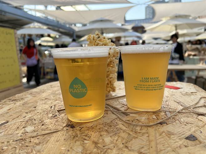 | ▲ 개항장과 나비잠. 생분해성 플라스틱 컵에 맥주를 담아준다. |