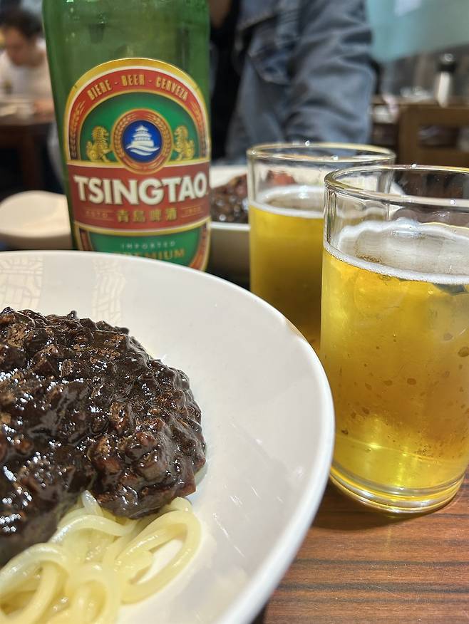 | ▲ 유니짜장면과 칭다오 맥주 |
