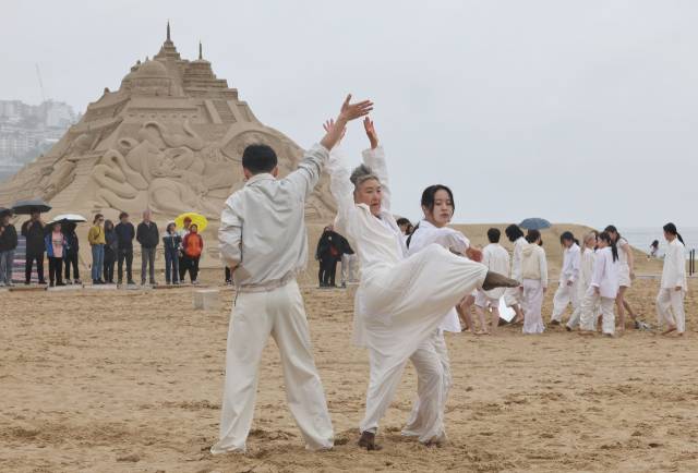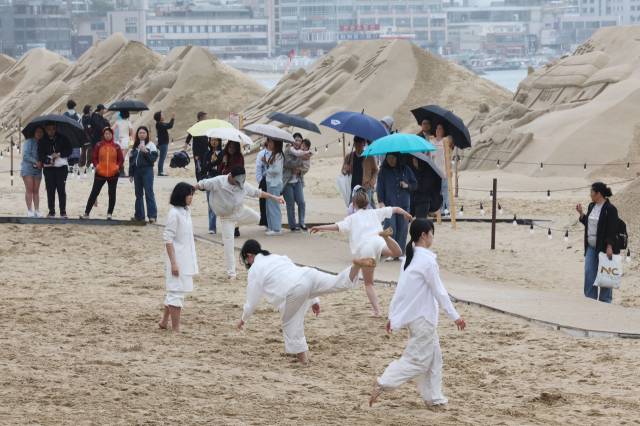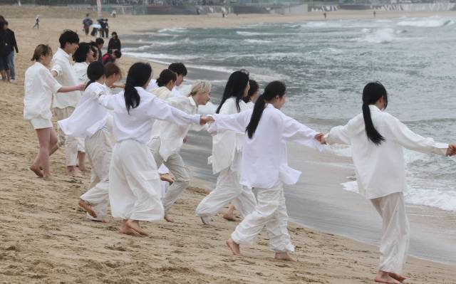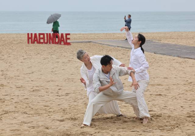 현대무용단 자유 해운대 백사장서 야외즉흥 공연