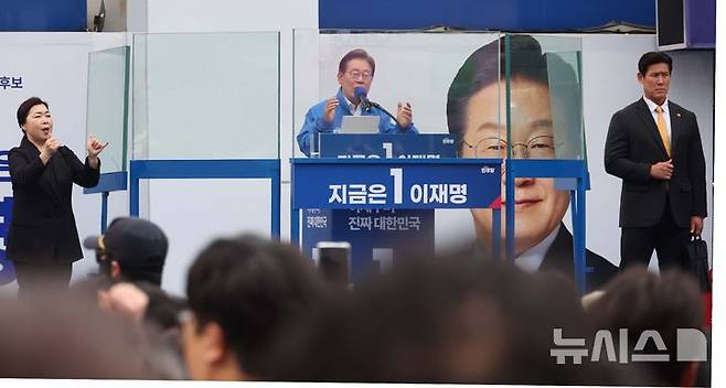 [시흥=뉴시스] 조성봉 기자 = 이재명 더불어민주당 대선 후보가 24일 경기 시흥 배곧아브뉴프랑 센트럴광장에서 열린 유세에서 시민들에게 지지를 호소하고 있다. 2025.05.24.suncho21@newsis.com