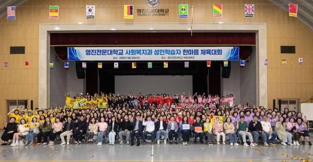 영진전문대학교(총장 최재영) 사회복지과는 24일 교내 백호체육관에서 '2025 한마음 체육대회'를 열었다. 이번 체육대회에는 전문학사과정 1·2학년과 학사학위과정 3·4학년 재학생 전원이 참여했으며, 교수진 20여 명을 포함해 총 420여 명이 한자리에 모였다.