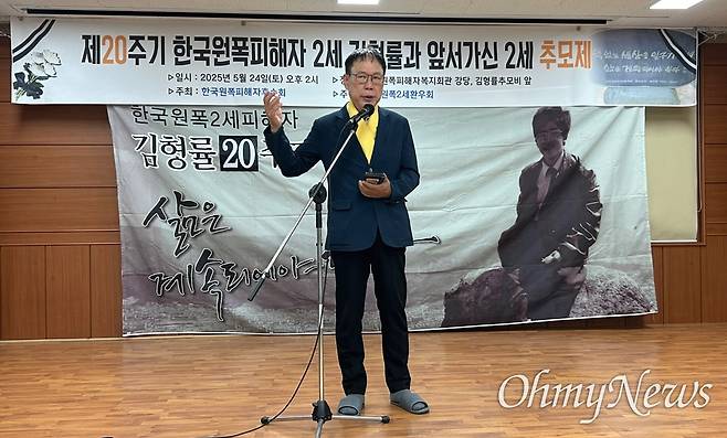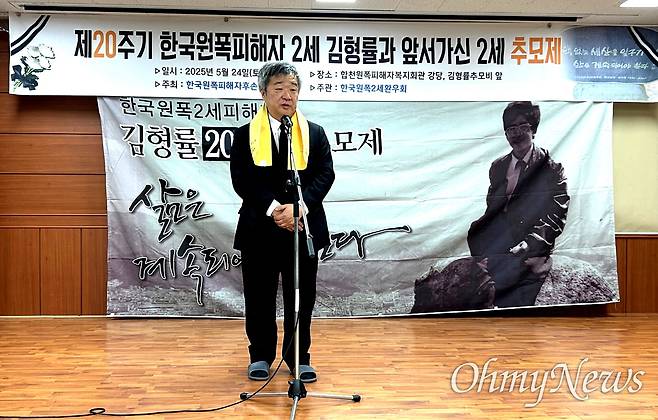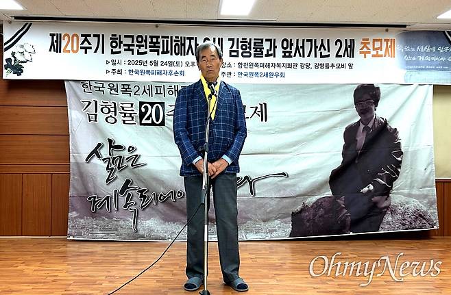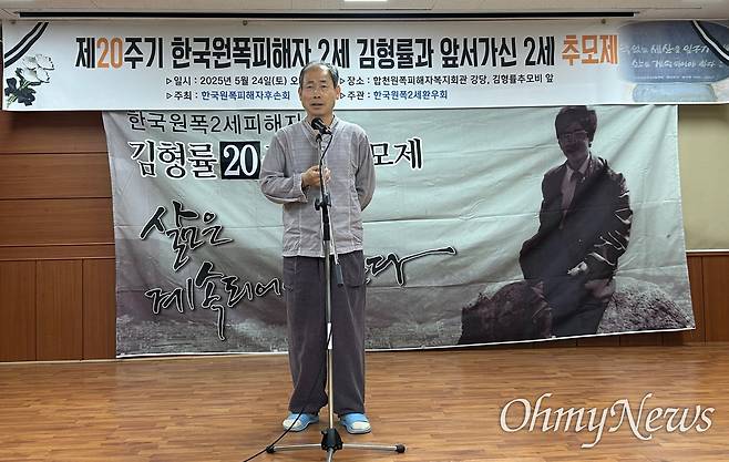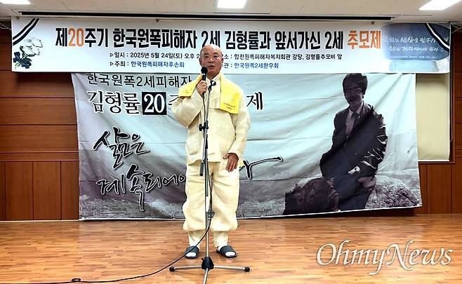 | ▲ 24일 오후 합천원폭피해자복지회관에서 열린 “한국원폭피해자 2세 김형률 20주기와 앞서 가신 2세 추모제”. 유영태 한국원폭희생자추모사업회장. |