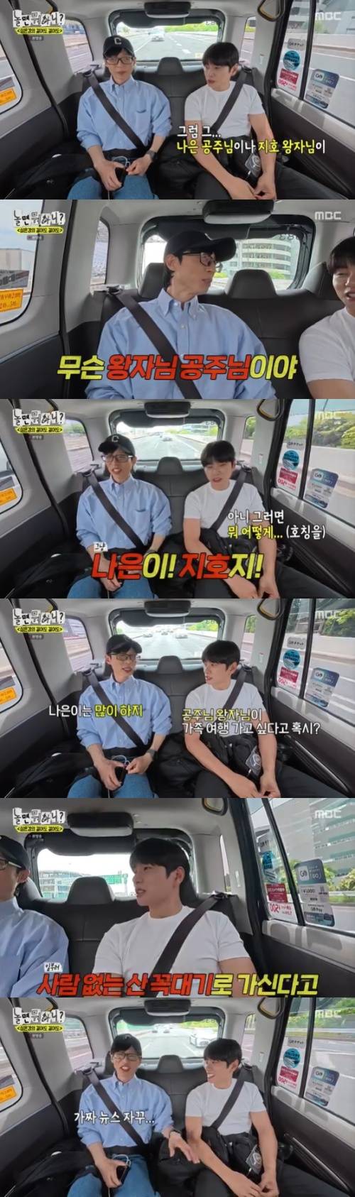 이이경은 "그럼 나은 공주님과 지호 왕자님이.."라며 호칭했고, 유재석은 "무슨 왕자님 공주님이냐? 나은이 지호지"라고 말해 웃음을 자아냈다.