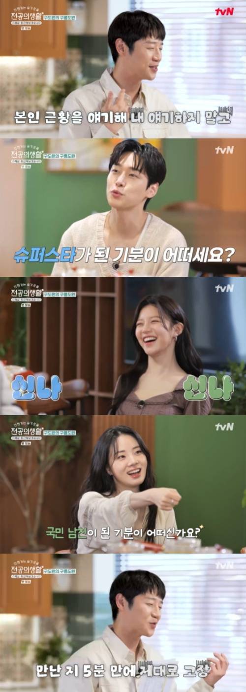 24일 오후 방송된 tvN '언젠가는 슬기로울 전공의생활 스페셜-퇴근해보겠습니다'에서는 카페 '구릉도원'에 모인 '풍년즈' 고윤정(오이영 역), 신시아(표남경 역), 강유석(엄재일 역), 한예지(김사비 역), 정준원(구도원 역)이 비하인드 스토리를 대방출했다.