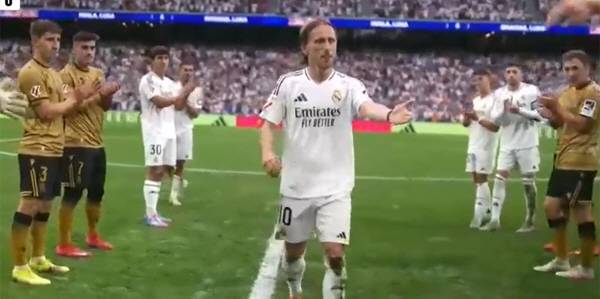 이 매체에 따르면, 경기 전 선수들이 입장할 때, 베르나베우 경기장 양쪽에서 두 개의 통천이 동시에 등장했다. 하나는 안첼로티 감독의 사진과 '감사해요, 카를레토'라는 감사 메시지가 적힌 거대한 현수막이었고, 다른 하나는 '영원한 등번호 10번' 모드리치에게 바치는 헌사였다. 팬들은 '레전드'라고 칭했다. 경기장 한 가운데에는 모드리치의 등번호인 거대한 10번 유니폼이 펼쳐졌다. 모드리치는 2-0 앞선 후반 40분 팬들의 기립박수를 받으며 교체돼 나왔다. 경기는 잠시 중단됐다. 레알과 소시에다드 선수들이 두 줄로 도열해 '가드 오브 아너'를 시행했다. 옛 동료 토니 크로스도 현장을 찾아 모드리치와 뜨거운 포옹을 나눴다. 모드리치의 가족, 일부팬의 눈에선 눈물이 흘렀다. 경기는 레알의 2대0 승리로 끝났다.
