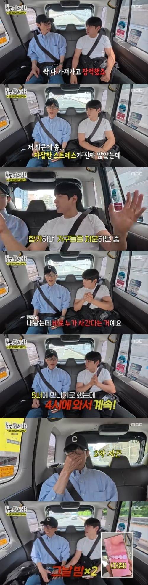 두 사람은 심은경을 만나려고 택시를 타고 이동했고, 이이경은 "내가 최근에 자잘한 스트레스가 많았는데 중고 사기를 당했다"며 "이사 가는데 시스템 행거, 소파 등 큰 물건을 없애려고 내놨다. 누가 바로 산다고 하더라. 근데 자꾸 정해진 시간이 있는데 한 시간 먼저 온다고 했다. 원래 5시에 만나기로 했는데 4시에 설치하는 해체 기사와 함께 왔다고 같이 들어가겠다고 했다"고 밝혔다.