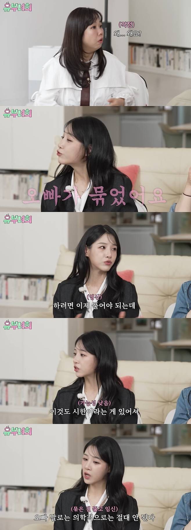 이어 "(임신을) 하려면 이제 풀어야 한다. 시한이라는 게 있다"며 "오빠 말로는 의학적으로는 절대 안 된다"고 밝혔다.