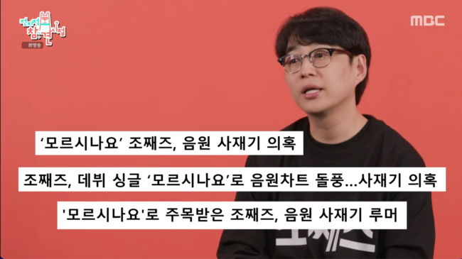 [OSEN=박근희 기자] '전지적 참견 시점’ 조째즈가 ‘모르시나요’ 사재기 의혹에 대해 언급했다.