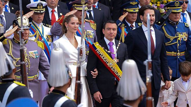 노보아 대통령은 탄핵 위기를 맞은 기예르모 라소(69) 전 대통령의 조기 퇴진 결정에 따라 이 나라 역사상 처음으로 치러진 2023년 보궐 성격 대통령선거에서 승리, '전 세계 최연소 국가 정상'이라는 수식어와 함께 1년여간 국정을 운영한 뒤 지난달 대선에서 연임을 확정하고 이날 4년 임기를 시작했습니다.