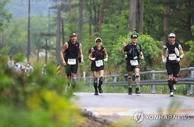 (인제=연합뉴스) 지난 24일 국제구호개발기구 옥스팜코리아와 강원 인제군이 개최한 세계적인 기부 프로젝트 '옥스팜 트레일워커' 대회에서 참가자들이 완주에 도전하고 있다.