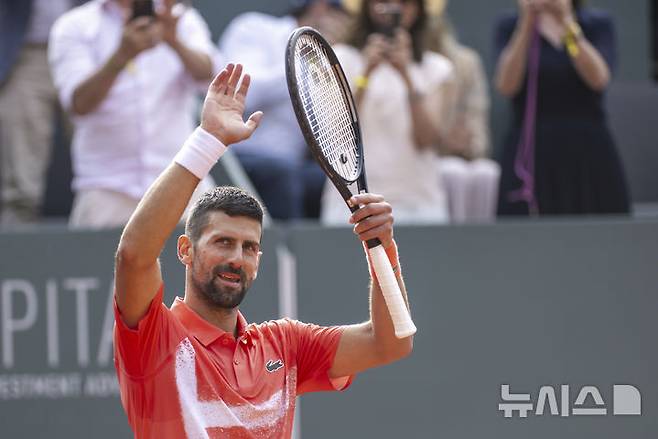 [제네바=AP/뉴시스] 노바크 조코비치(6위·세르비아)가 24일(현지 시간) 스위스 제네바에서 열린 남자프로테니스(ATP) 투어 제네바 오픈(ATP250) 단식 결승에서 후베르트 후르카치(31위·폴란드)를 꺾은 후 세리머니하고 있다. 조코비치는 후르카치에게 2-1(5-7 7-6 7-6) 역전승을 거두고 우승하며 ATP 투어 이상급 대회 단식 100회 우승의 대기록을 작성했다. 2025.05.25.