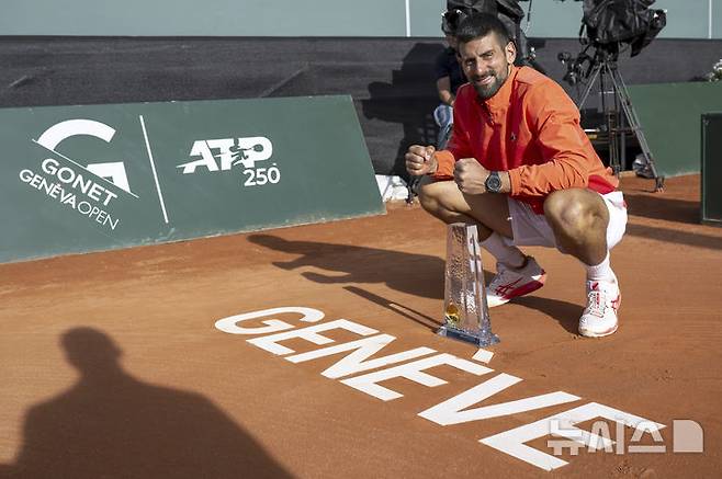 노바크 조코비치(6위·세르비아)가 24일(현지 시간) 스위스 제네바에서 열린 남자프로테니스(ATP) 투어 제네바 오픈(ATP250) 정상에 올라 트로피를 들고 기념 촬영하고 있다.