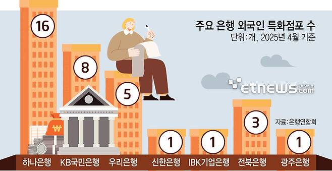 은행연합회에 따르면 4월 말 기준 국내 은행이 운영 중인 외국인 특화 점포는 35곳으로 기존 최대치인 40개(2018년)에 육박했다. 국내은행은 2016년부터 2019년까지 전국에서 연간 30개 이상 외국인 근로자 특화점포를 운영했지만, 코로나 팬덱믹 이후 외국인 근로자들이 빠져나가며 20여개로 규모를 줄였다. 지난해 연말을 기점으로 다시 규모를 늘리는 추세다