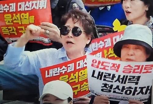 '민주정부 건설-내란세력 청산 촉구, 141차 촛불대행진 집회'가 24일 오후 4시 서울 서초구 윤석열 전 대통령 사저 앞 지하철 교대역 9번 출구 앞에서 열렸다. 기조 발언을 한 김민웅 촛불행동 상임대표는 "내란을 일으키다가 국민의 항쟁으로 권좌에서 쫓겨난 내란수괴 윤석열은 지금 어디에 있어야 하냐"며 "당연히 감옥에 갇혀 있어야 한다"고 말했다. 이어 "주권자 국민의 목숨을 총칼로 겨냥한 대역죄인이 어떻게 거리로 활보하고 다닐 수 있는가"라며 "감방에 처넣어야 하는 것이 아니겠냐. 내란수괴 윤석열을 즉각 구속하라"고 외쳤다.