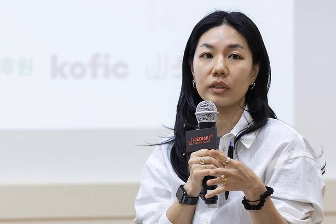 | ▲ 전주영화제에서 열린 포럼 현장. 권보람 인티머시 코디네이터를 비롯 임선애 감독, 권잎새 배우가 참석했다. |