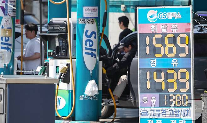 25일 서울의 한 주유소에서 휘발유와 경유가 각각 리터당 1,569원과 1,439원에 판매되고 있다. 2025.5.25/뉴스1