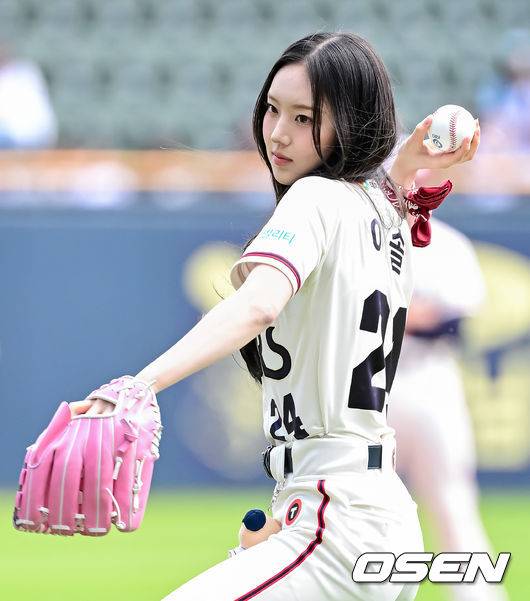 가수 키키 이솔이 시구를 하고 있다. 2025.05.25 /jpnews@osen.co.kr