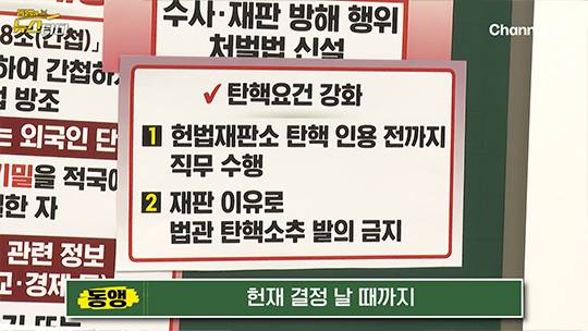 또, “탄핵 요건을 강화하겠다”고 합니다. 일단, 국회가 탄핵을 너무 쉽게 해서 정권을 운영하기가 어려우니 헌재에서 탄핵을 인용하기 전까지는 직무수행을 계속 할 수 있도록 요건을 강화하자는 거죠. 또 재판을 이유로 법관(판사) 탄핵소추를 발의하지 못 하게 제한 사유를 두자는 내용입니다.