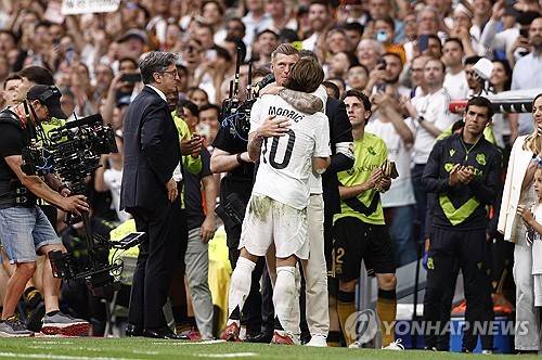 스페인 마르카는 "세상에서 가장 아름다운 작별. 산티아고 베르나베우의 관중들은 눈물을 흘렸다. 경기가 끝나기 5분을 남기고 모드리치가 교체되자 감정이 격해지기 시작했다. 모든 관중들이 일어섰다. 눈에 띄게 감정이 북받친 모드리치는 눈물을 흘리며 소시에다드 선수들을 포함한 모든 선수들이 일렬로 선 사이를 걸어갔다"면서 "그 끝에는 깜짝 손님이자 뗄 수 없는 파트너였던 크로스가 두 팔 벌려 기다리고 있었다. 우정 이상의 의미를 지닌 포옹이었고, 시대의 종말을 상징했다"고 조명했다.