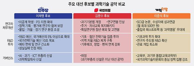 [대선공약 톺아보기]〈12〉'R&D·처우·거버넌스'…과학기술 공약 비교분석
