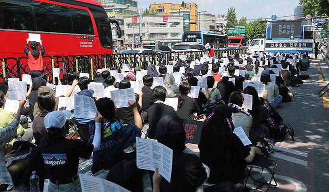 동덕여대생들, 서울경찰청 앞 집회 '점거농성' 수사중단 촉구